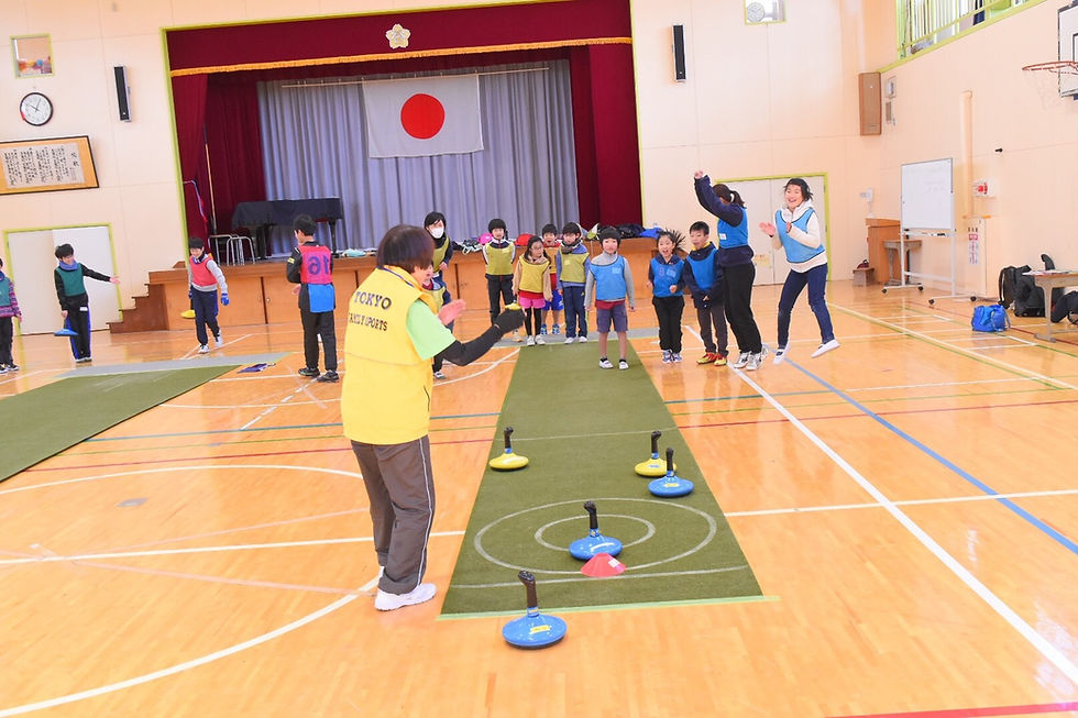 ~隊員の感想~ ・ひとがなげるときはうしろにいかない(小2女子) ・青組がかってうれしかった(小2女子) ・点をいれることができてうれしかった(小2男子) ・みんなで考えて動けた(小4女子) ・力加減がむずかしい(小4男子) ・カーリングと似ていたけどブラシを使わなかったからびっくりした(小5男子) ・あたまをつかうスポーツだった。たくさん作戦をたてた。(小5男子) などなど…